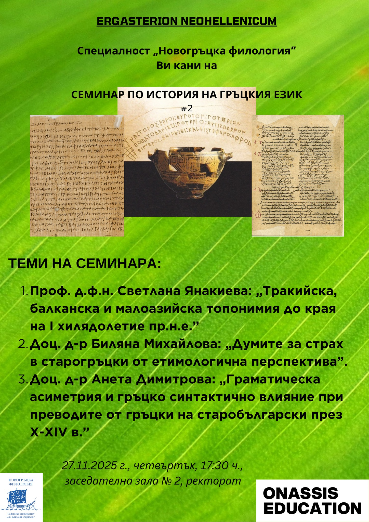 Семинар по история на гръцкия език (27.11.2025 г.)